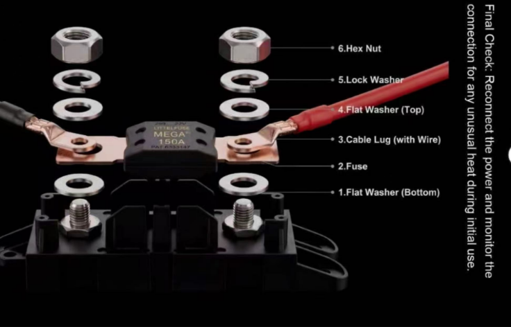 Make sure to go copper-to-copper on the ring terminals and the fuse.
